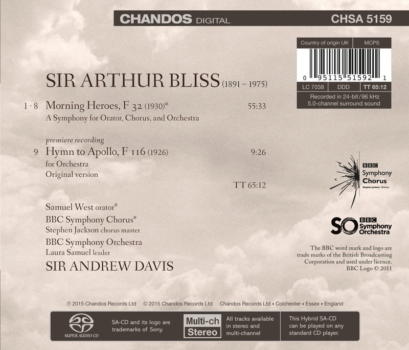 ChandosBliss: Morning Heroes; Hymn for Apollo / Davis, BBC Symphony