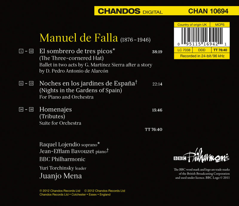 ChandosFalla: Nights In The Gardens Of Spain, The Three-Cornered Hat / Mena, Bavouzet, BBC Philharmonic