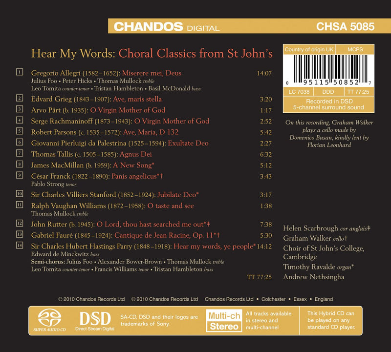 As exclusive Chandos artists, the Choir of St John's College, Cambridge here presents its second release. The first CD, of choral music...