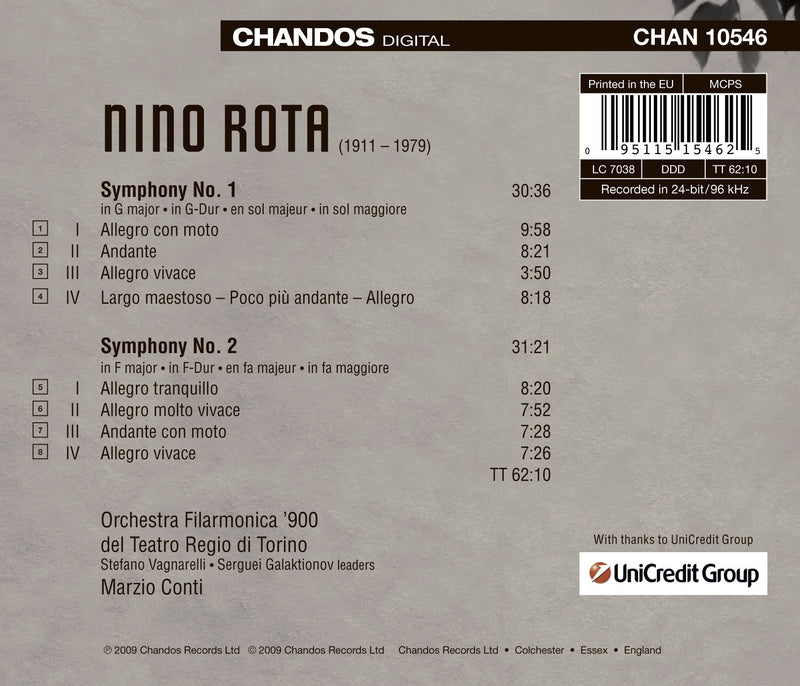 ChandosRota: Symphony No 1 & 2 / Conti, Filarmonica '900