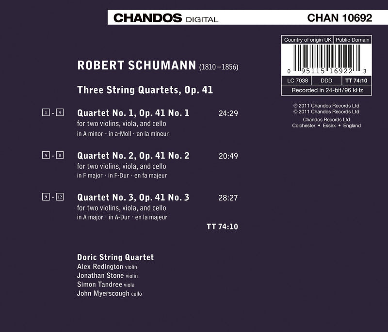 ChandosSchumann: String Quartets, Op. 41 / Doric String Quartet