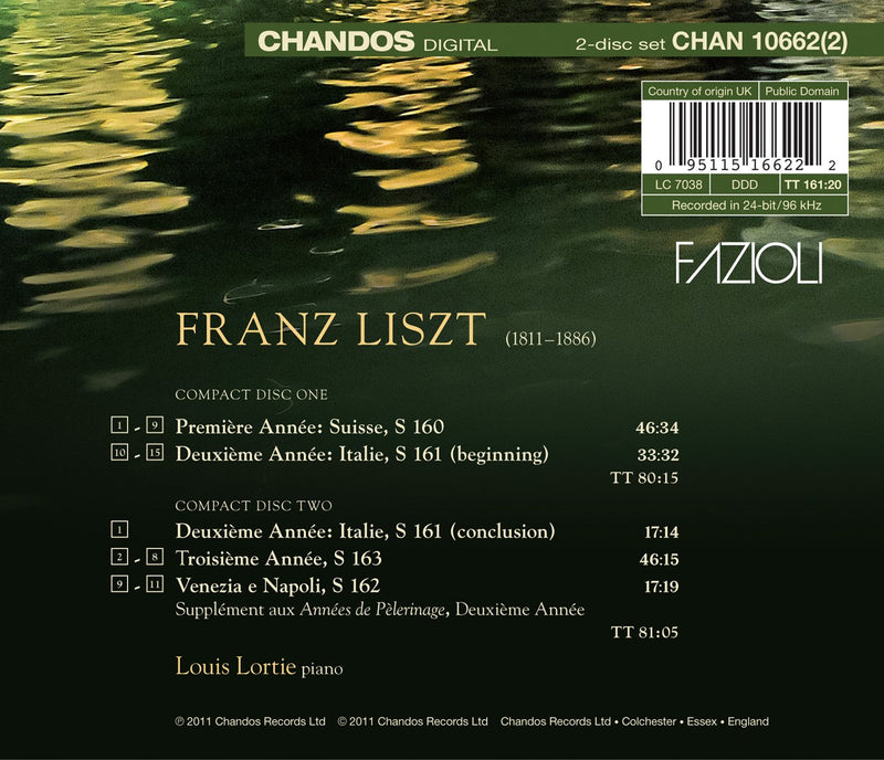 LISZT Années de pèlerinage • Louis Lortie (pn) • CHANDOS 10662 (2 CDs: 161:20)