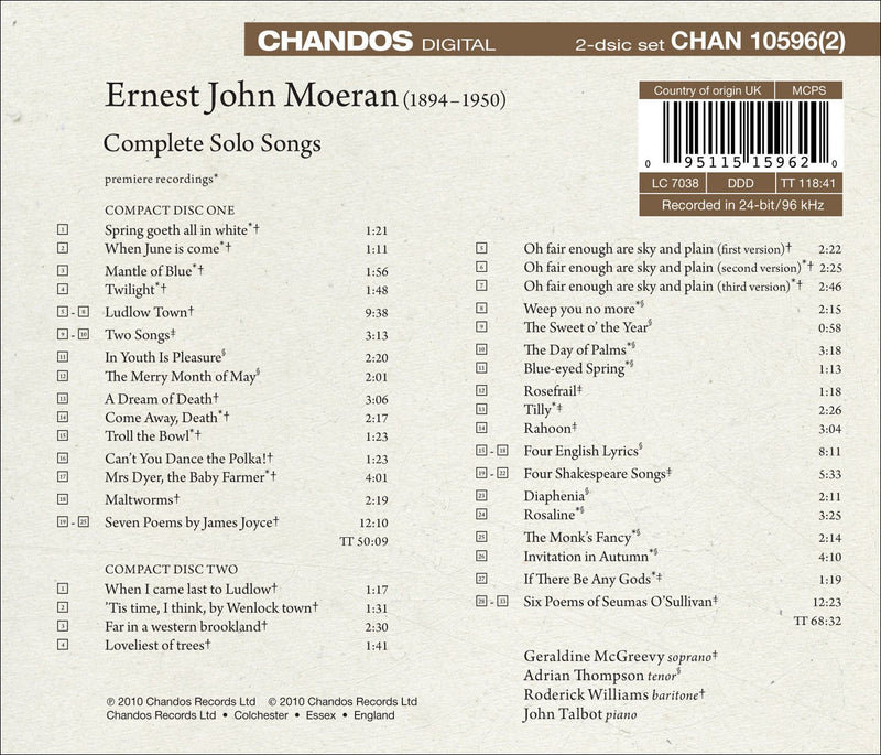 But both approaches are musically valid and convincing as well as emotionally rewarding, and this Chandos disc should be part of any self-respecting collection of 20th- century English music. Hear! Hear!
