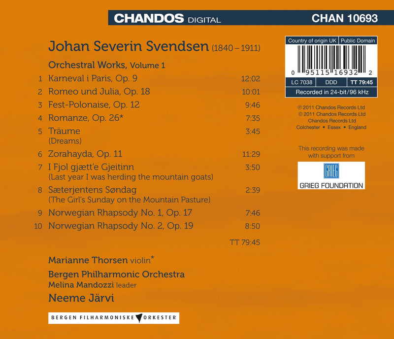 ChandosSvendsen: Orchestral Works Vol 1 / Jarvi, Bergen Philharmonic Orchestra