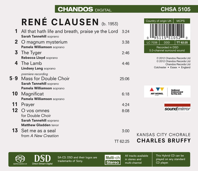 CLAUSEN All That Hath Life and Breath, Praise Ye the Lord. O magnum mysterium. The Tyger. The Lamb. Mass for Double Choir....
