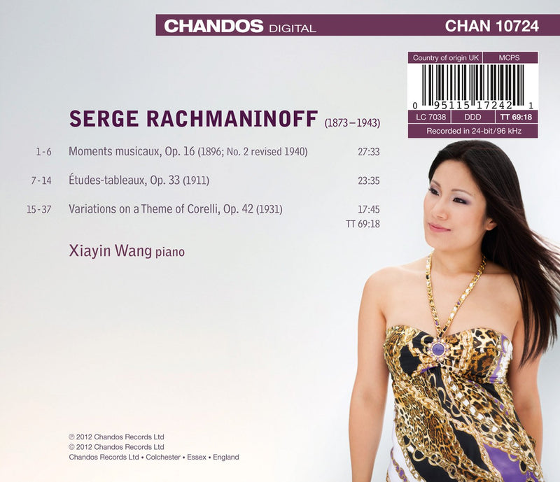 RACHMANINOFF Moments musicaux. Etudes-tableaux, op. 33. Variations on a Theme of Corelli • Xiayin Wang (pn) • CHANDOS CHAN10724 (69:18)