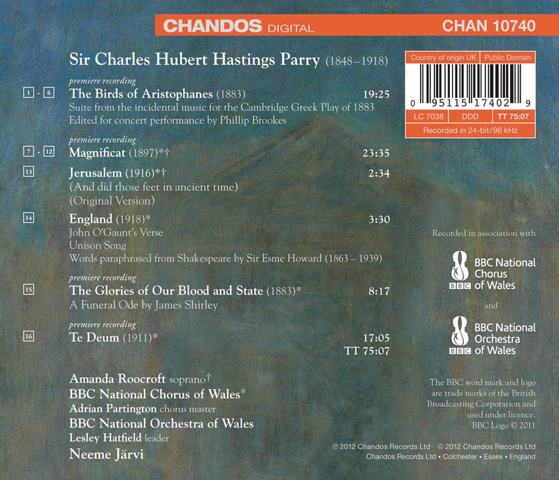 One of the most important Parry issues for many years, this is a credit to all the performers, not least the warmly committed conductor, Neeme Järvi, drawing the whole ensemble together.