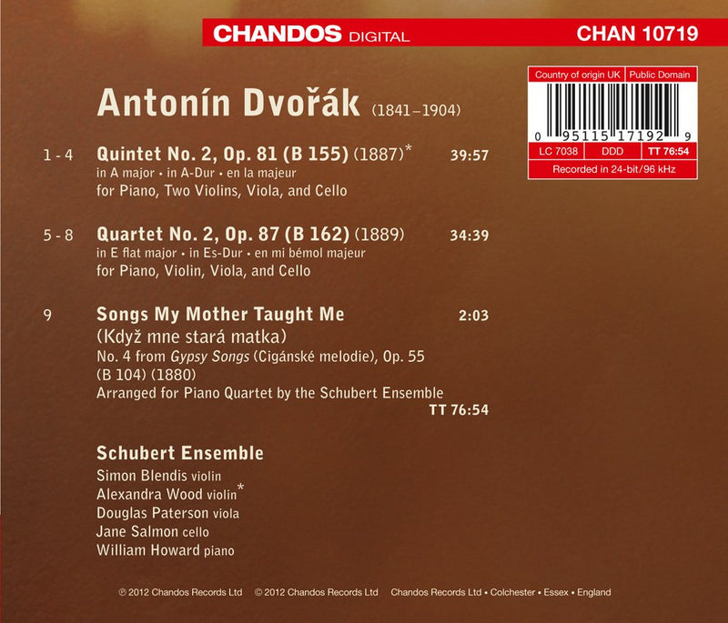 ChandosDvorak: Piano Quartet No. 2, Op. 87, Piano Quintet No. 2, Op. 81 / Schubert Ensemble