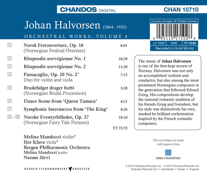 ChandosHalvorsen: Orchestral Works, Vol. 4 / Jarvi, Bergen Philharmonic