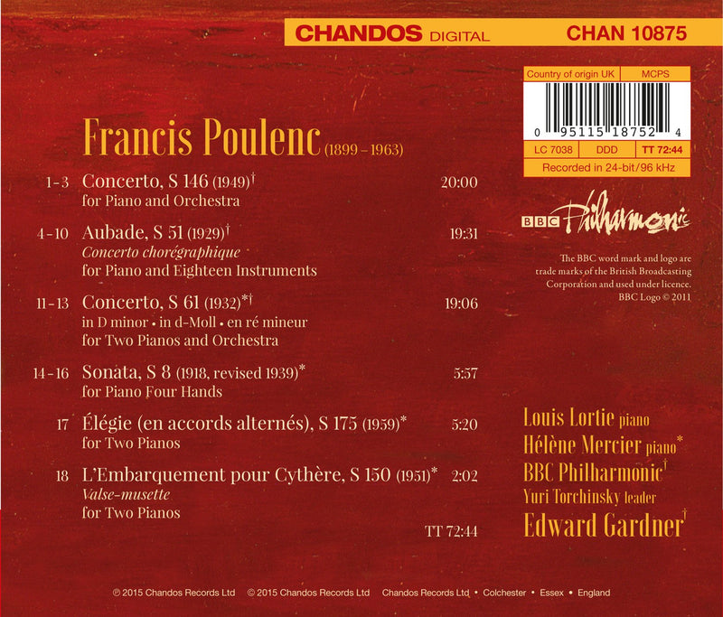 ChandosPoulenc: Piano Concertos; Aubade / Gardner, Lortie, Mercier