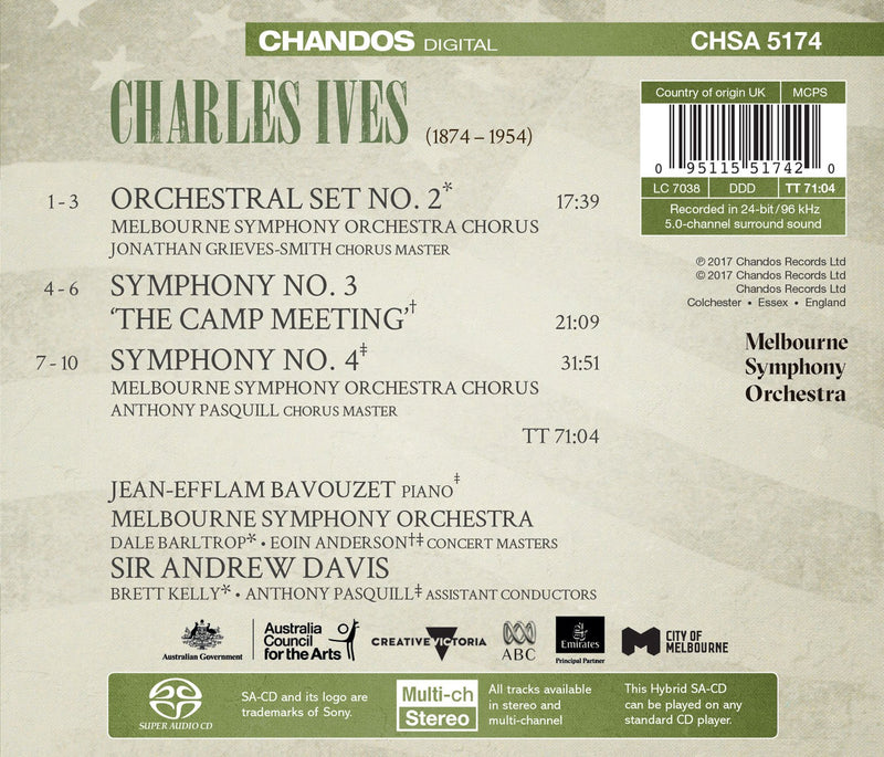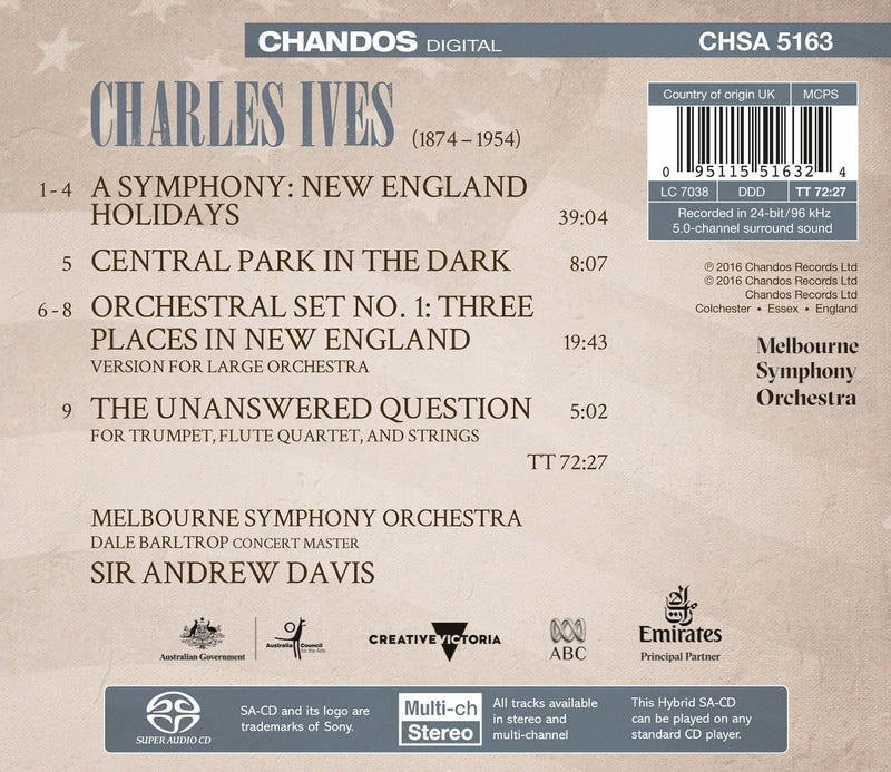 ChandosIves: Orchestral Works, Vol. 3 / Davis, Bavouzet, Melbourne Symphony