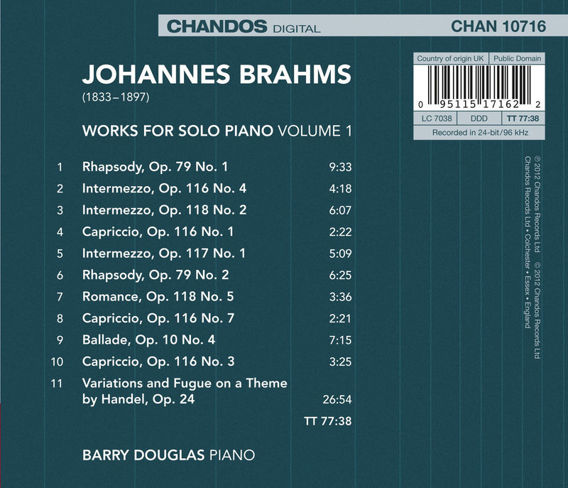 ChandosBrahms: Works for Solo Piano, Vol. 1