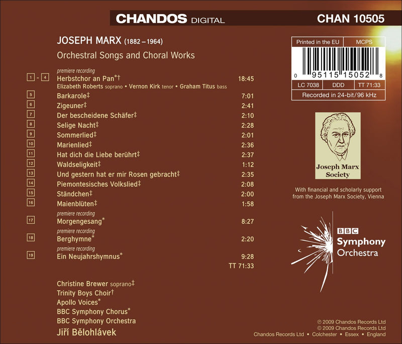 The Austrian composer Joseph Marx was for much of his long career a musical authority of world renown. Within his large output,...
