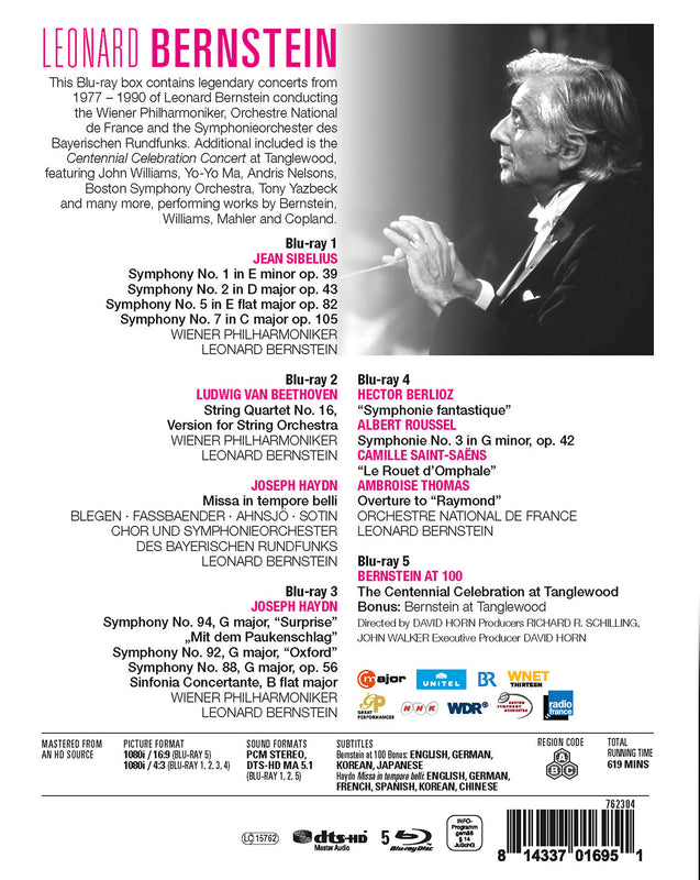 This Blu-ray box contains legendary concerts from 1977 – 1990 of Leonard Bernstein conducting the Wiener Philharmoniker, Orchestre National de France and...