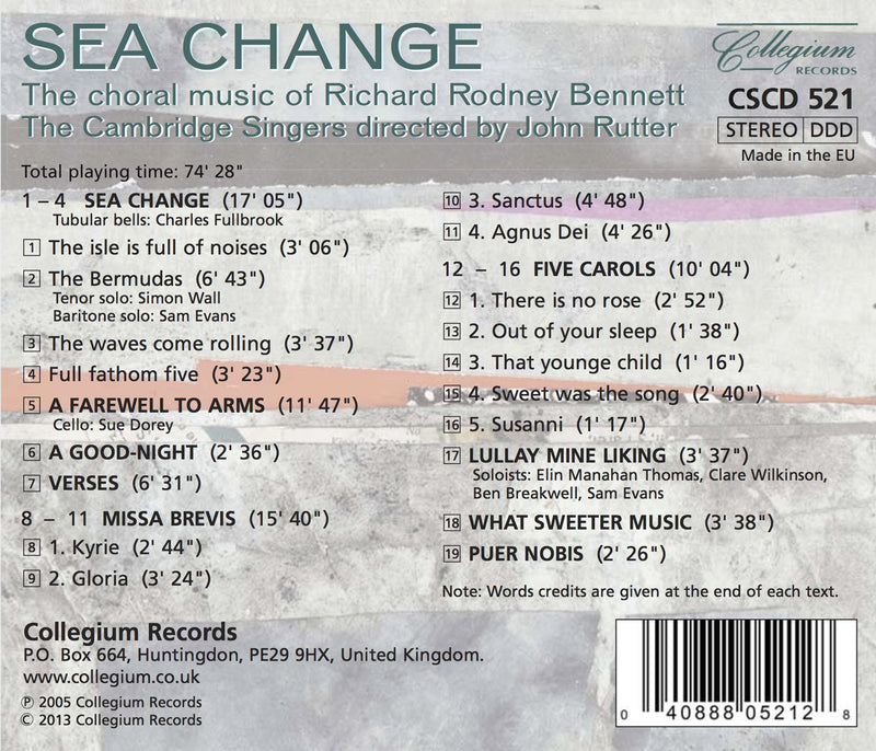 Collegium RecordsSea Change: The Choral Music of Richard Rodney Bennett