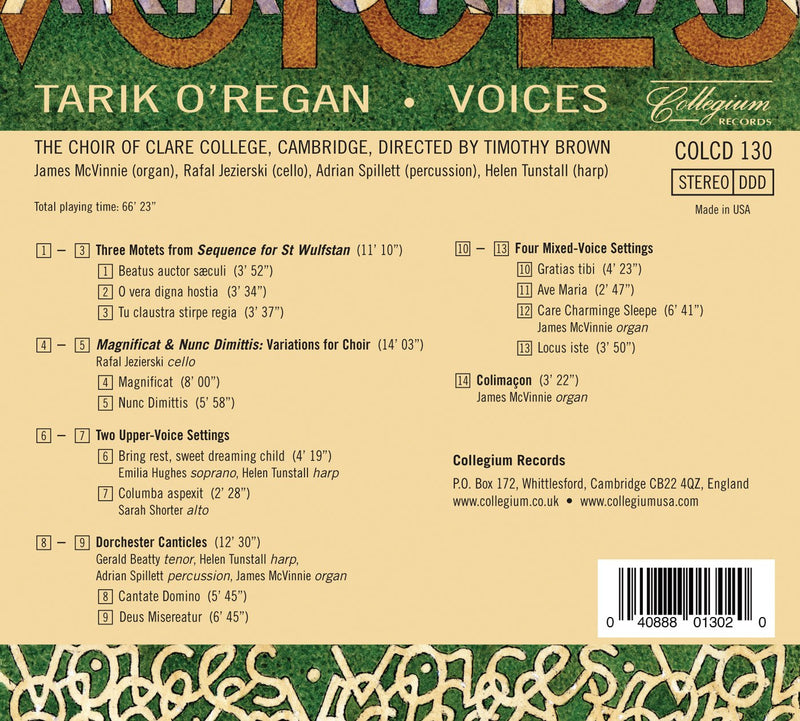 Collegium RecordsVoices - O'Regan / Brown, Choir of Clare College