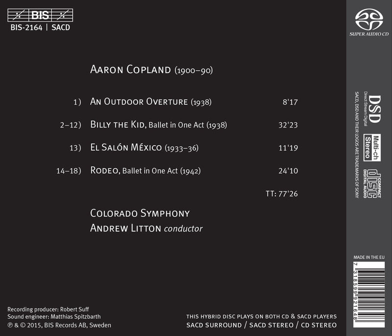 BISCopland: Billy the Kid, Rodeo, El Salon Mexico & An Outdoor Overture / LittonHaving taken up the post of music director with the Colorado Symphony in 2013, Andrew Litton has chosen a highly fitting program...