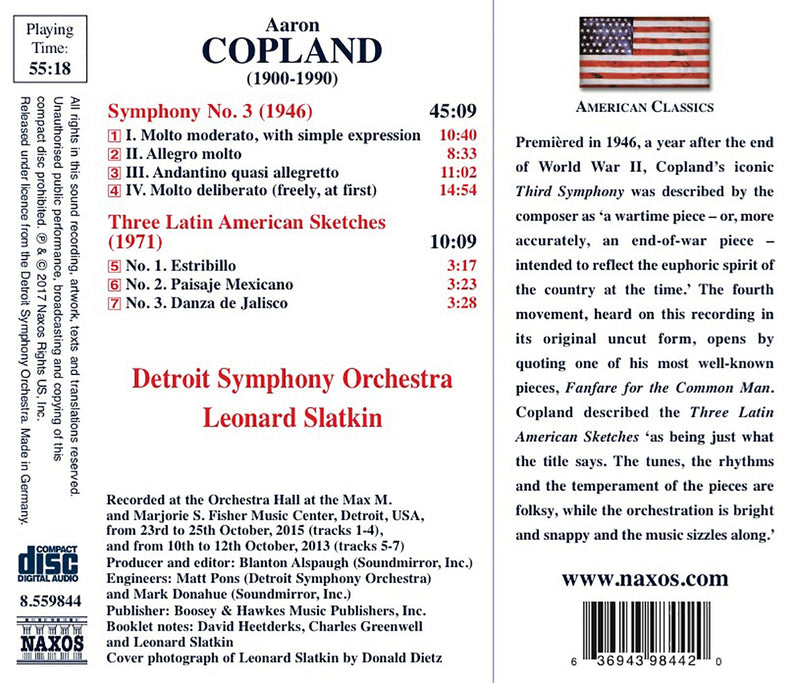 NaxosCopland: Symphony No. 3 & Three Latin American Sketches / Slatkin, Detroit Symphony