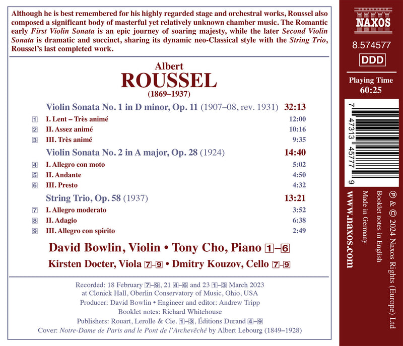 On SaleNaxosRoussel: Violin Sonatas Nos. 1 & 2; String Trio / Bowlin, Docter, Kouzov, Tony Cho