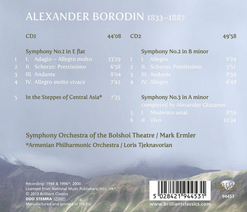 Brilliant ClassicsBorodin: Symphonies 1-3, In The Steppes Of Central Asia / Ermler, TjeknavorianThe First Symphony is notable for the rhythmic interest of the first movement and the lively second movement, which shows the influence...
