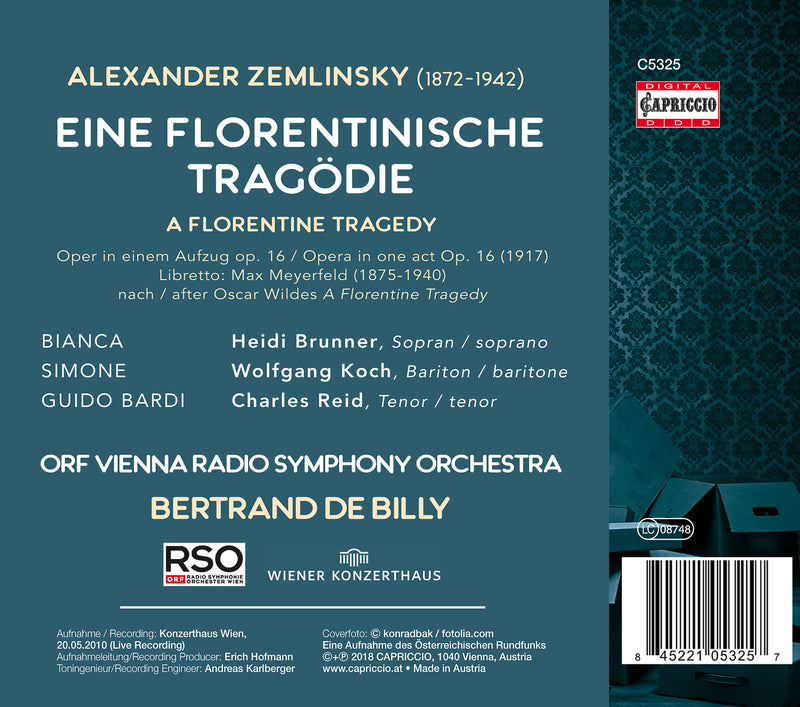 CapriccioZemlinsky: Eine Florentinische Tragodie / Koch, De Billy, ORF Vienna Radio SymphonyOscar Wilde’s A Florentine Tragedy was written in 1893, but remained a fragment when the author was arrested. But the material was...