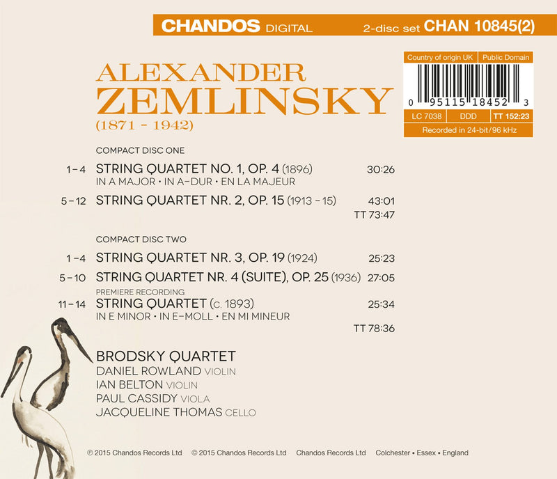 ChandosZemlinsky: Complete String Quartets / Brodsky QuartetIn this recording of Alexander Zemlinsky’s (1871-1942) complete String Quartets, the Brodsky Quartet gives fresh life to the composer’s works, ‘with a...