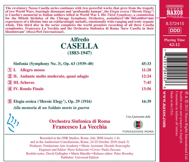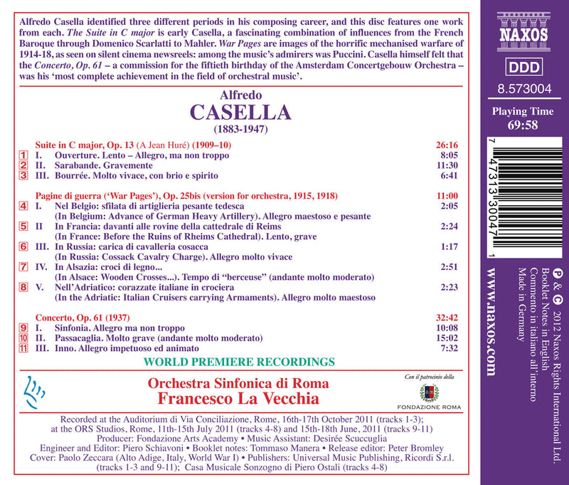 NaxosCasella: Concerto for Orchestra / La Vecchia, Rome Symphony OrchestraAlfredo Casella identified three different periods in his composing career, and this disc features one work from each. The Suite in C...