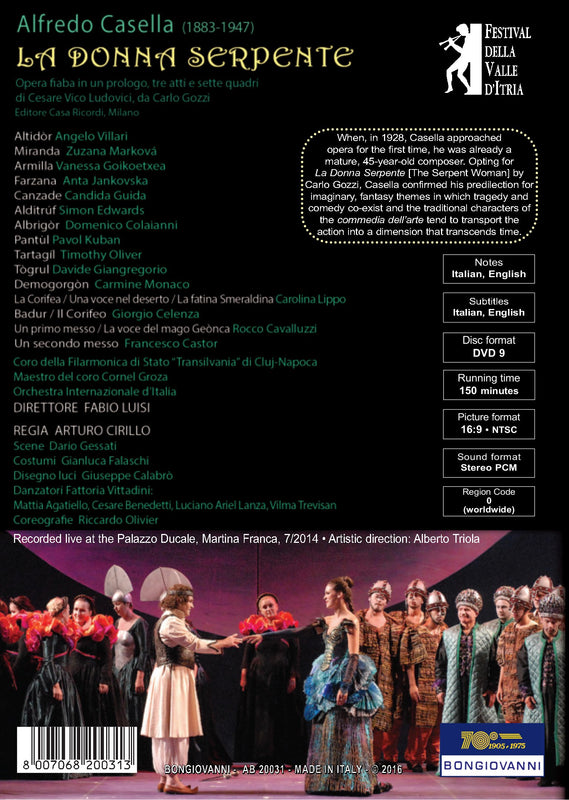 BongiovanniCasella: La donna serpente / Villari, Luisi, Orchestra Internazionale d'ItaliaWhen, in 1928, Alfredo Casella approached opera for the first time, he was already a mature, 45-year-old composer. La Donna Serpente by...