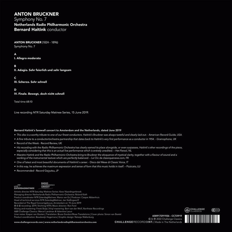 Challenge ClassicsBruckner: Symphony no. 7 on Vinyl / Haitink, Netherlands Radio Philharmonic