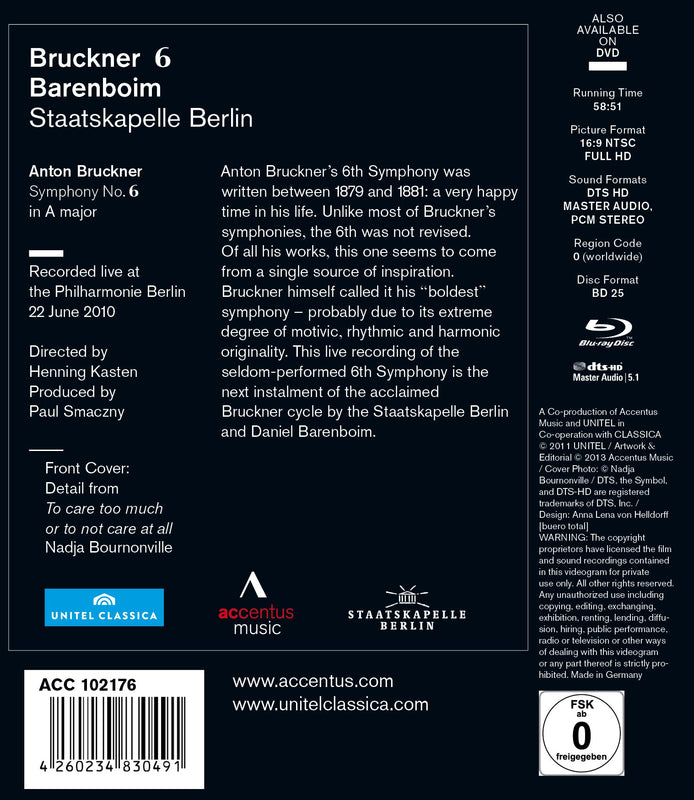 Accentus MusicBruckner: The Mature Symphonies - Symphony No 6 / Barenboim [blu-ray]