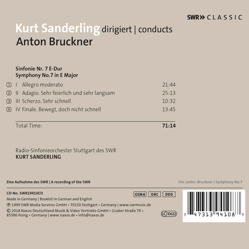 This is a re-release of an SWRmusic-Bestseller. It contains Bruckner‘s most famous symphony heard in an outstanding interpretation. Kurt Sanderling, at that...