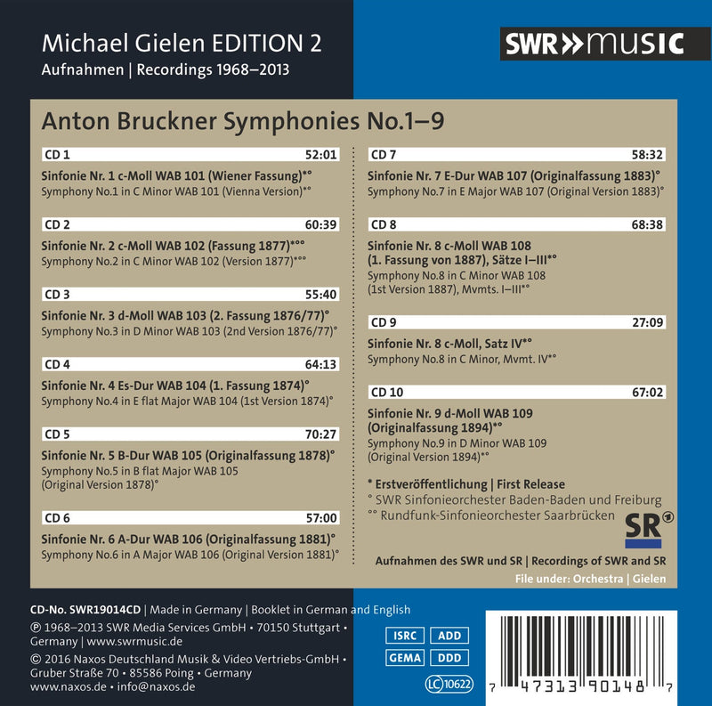 SWRMichael Gielen Edition, Vol. 2: Bruckner – Symphonies Nos. 1-9