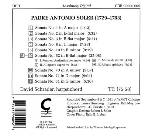 CedilleSoler: Harpsichord Sonatas, Vol. II / David SchraderSOLER: Harpsichord Sonatas, Vol. II