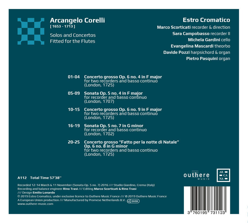 ArcanaCorelli: Solos and Concertos Fitted for the Flutes / Scorticati, CromaticoIn early 18th-century England, the recorder was a popular instrument among music lovers, therefore- since the eminent Italian composer Arcangelo Corelli’s works...