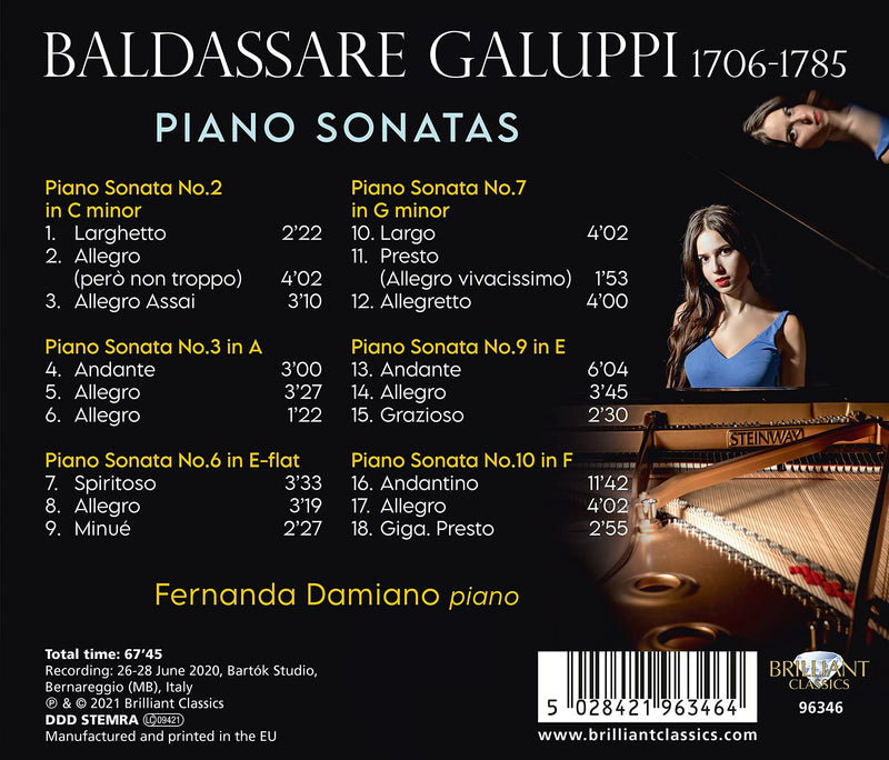 Brilliant ClassicsGaluppi: Piano Sonatas / DamianoAt a time when only Bach and Scarlatti were Baroque-era composers in the repertoire of pianists rather than harpsichordists, Arturo Benedetti Michelangeli...