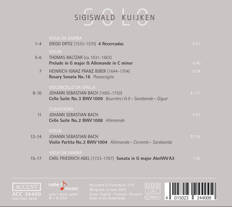 AccentSolo - Works for Violin, Cello da Spalla & Viola da Gamba / Sigiswald KuijkenSigiswald Kuijken is one of the most important pioneers of the early music scene and celebrates his 80th birthday on 16 February...