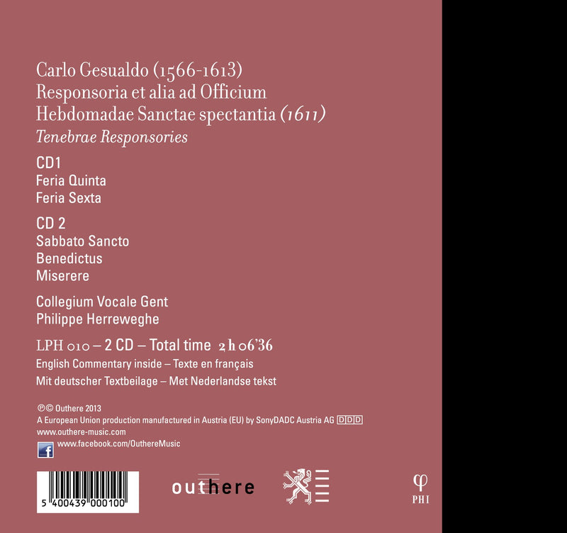 PHIGesualdo: Responsoria 1611 / Herreweghe, Collegium Vocale GentThe second project of Collegium Vocale Gent and Philippe Herreweghe for the Phi label to focus on Renaissance music is devoted to...