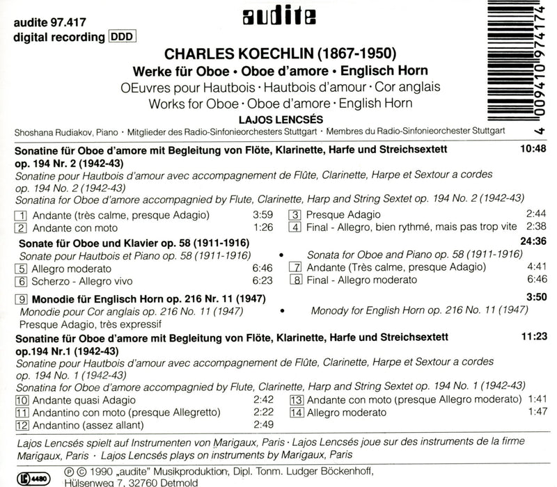 Oehms ClassicsKoechlin: Chamber Music for Oboe / Schilli