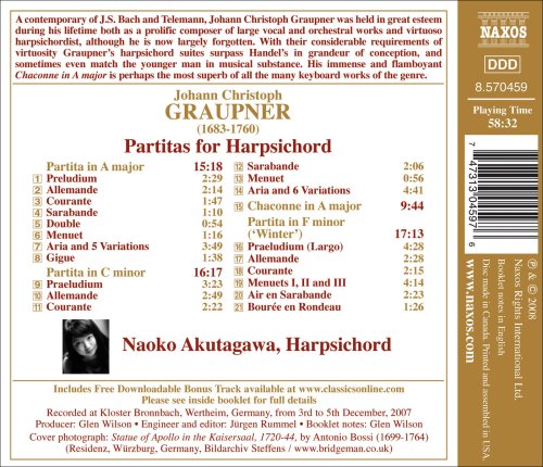 On SaleNaxosGraupner: Harpsichord Partitas / Naoko AkutagawaTechnically brilliant and captivating - strongly recommended Not long ago Christoph Graupner was little more than a name. He was mainly known...