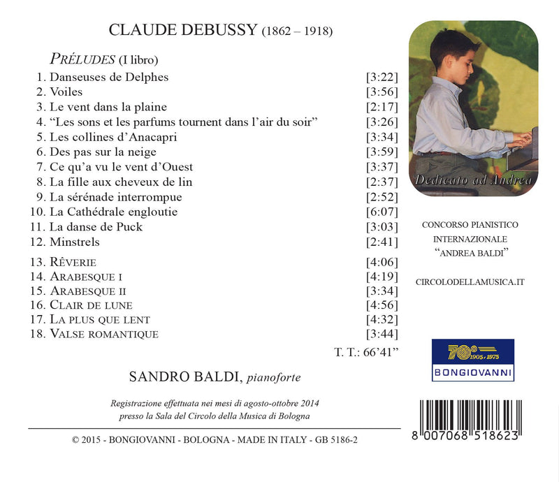 The pianist Sandro Baldi presents these seminal piano works of Debussy and the release includes two different periods in Debussy's development. The...