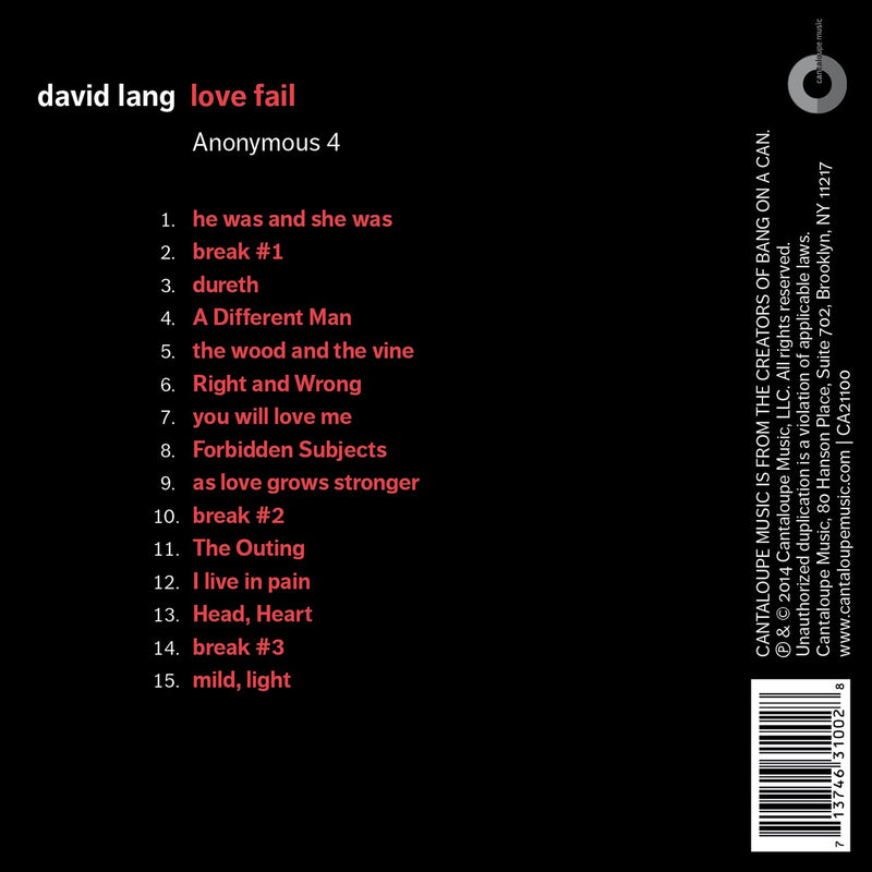 �David Lang's, "love fail" is a meditation on love's timelessness, weaving together details from the Tristan and Isolde story with more modern...