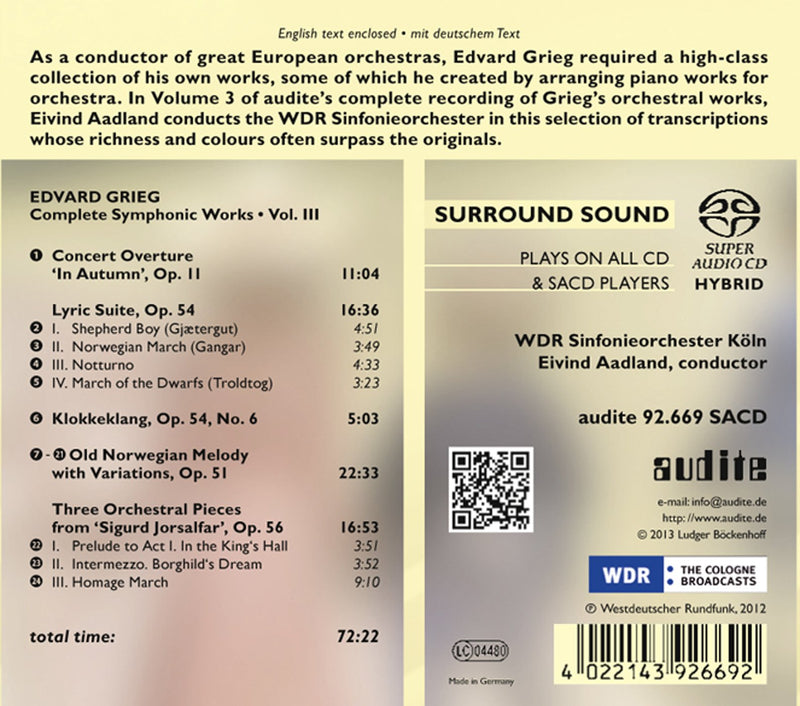 Audite MusikproduktionGrieg: Complete Symphonic Works, Vol. 3
