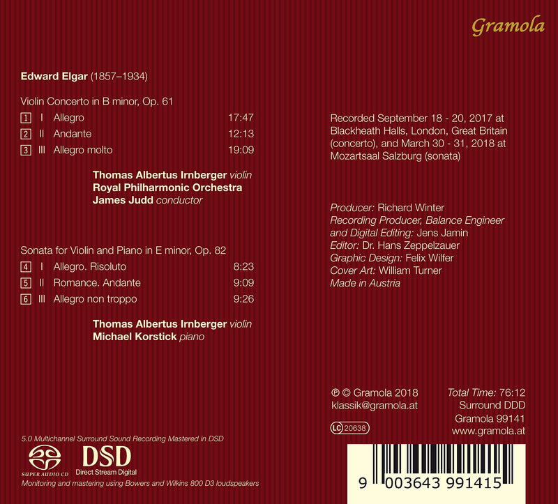 Gramola RecordsElgar: Violinkonzert & Violinsonate / Irnberger, Korstick, Judd, Royal Philharmonic