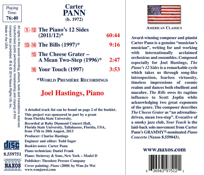 Award-winning composer and pianist Carter Pann is a genuine “musician’s musician”, writing for and working with internationally acclaimed orchestras and ensembles. Composed...
