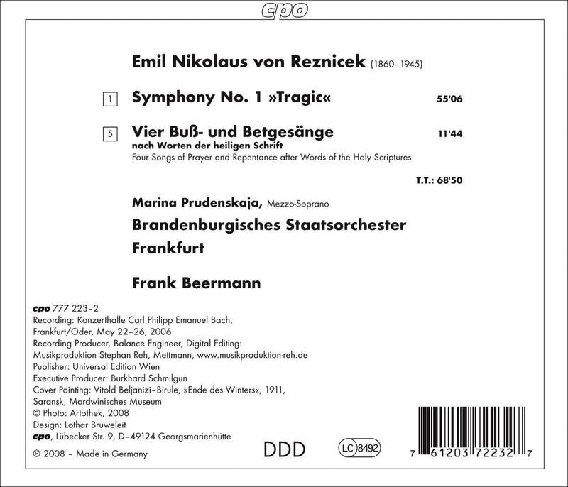 REZNICEK Symphony No. 1, “Tragic.” 4 Songs of Prayer and Repentance 1 • Frank Beermann, cond; Marina Prudenskaja (mez); 1 Brandenburg St...
