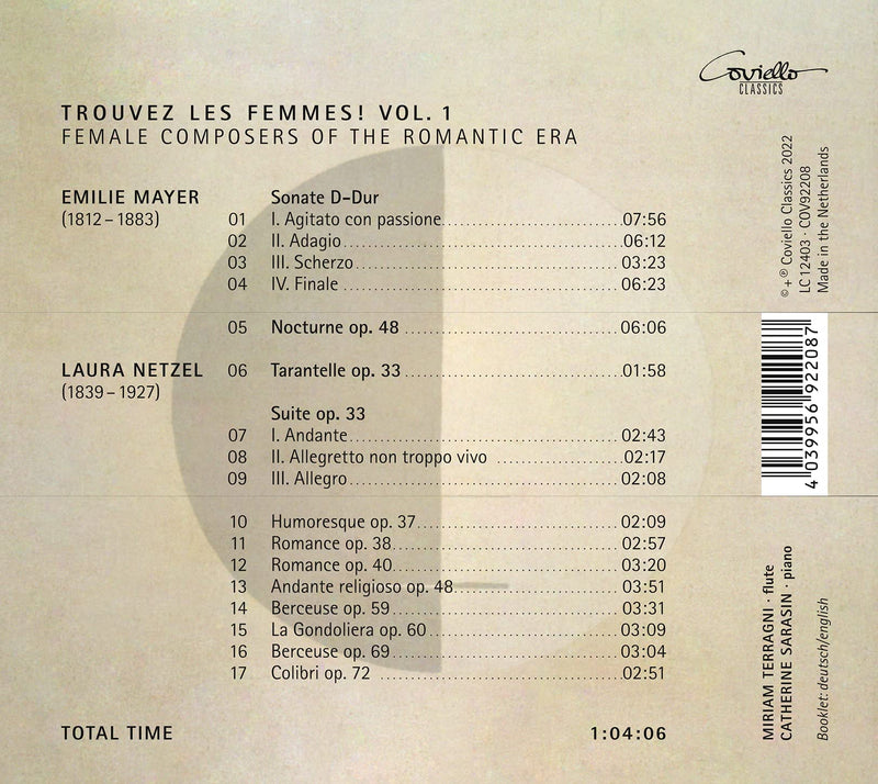 CovielloMayer & Netzel: Trouvez les femmes! Vol. 1 - Female Romantic Composers / Terragni, SarasinA gap in the repertoire provided the impulse for a genuine new discovery: there is plenty of repertoire for the flute from...