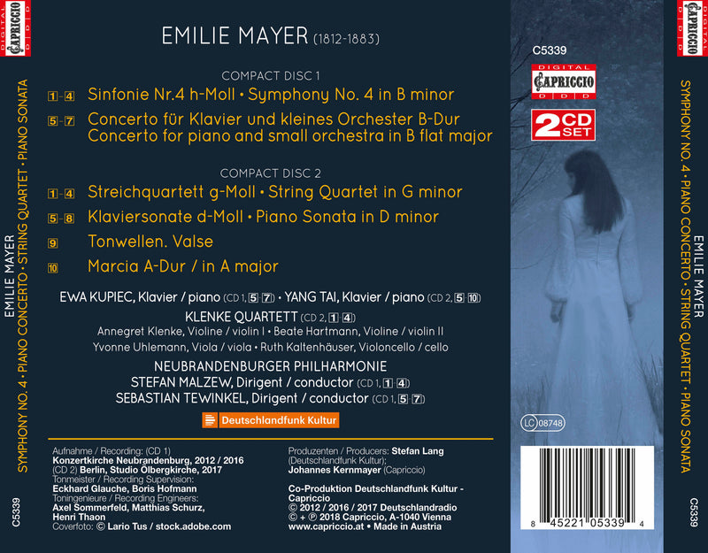 CapriccioMayer: Symphony No. 4, Piano Concerto, String Quartet, Piano Sonata“Miss E. Mayer is a rare phenomenon. [...] here we can see a female composer writing not merely for the pianoforte, but...