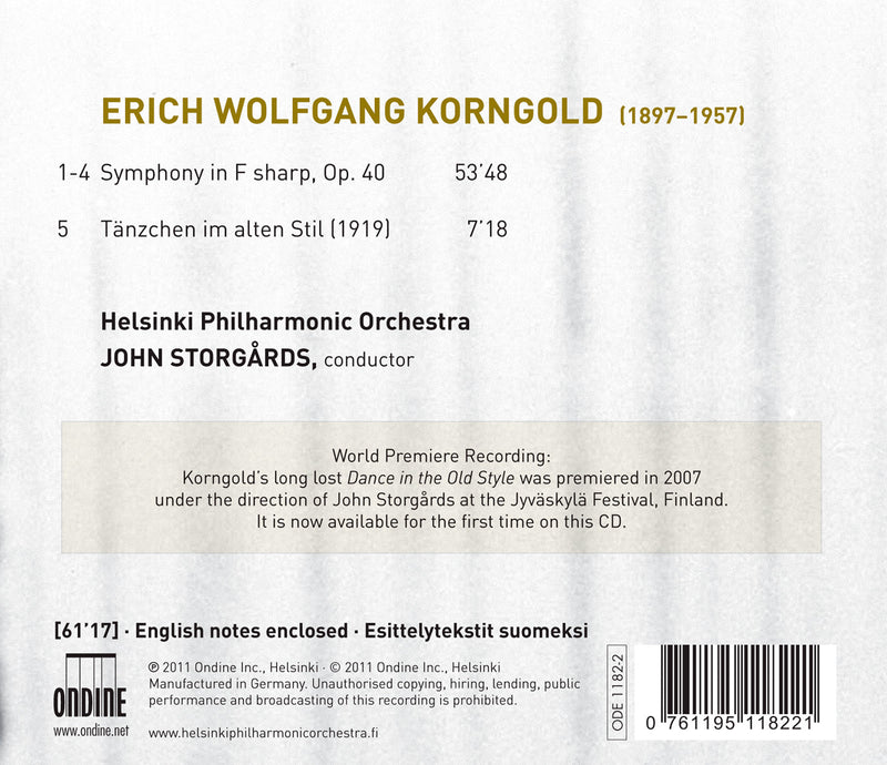 OndineKorngold: Symphony, Tanzchen Im Alten Stil / Storgards, Helsinki Symphony