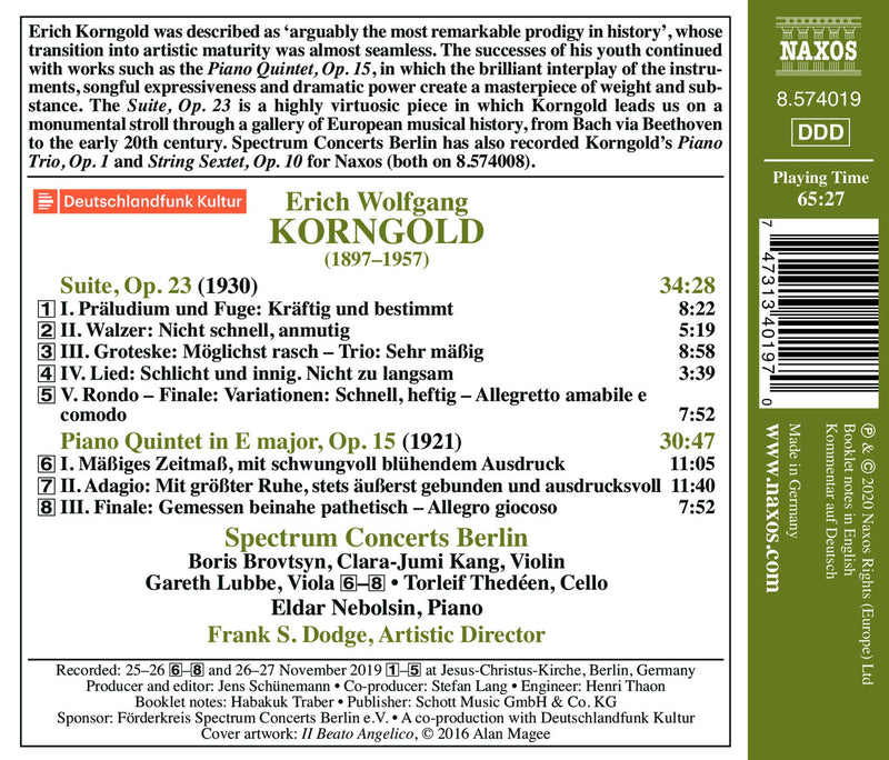 On SaleNaxosKorngold: Suite, Op. 23; Piano Quintet, Op. 15 / Spectrum Concerts Berlin