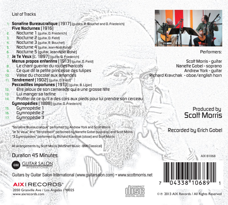 On this release Scott Morris plays new arrangements of Erik Satie’s music for guitar with soprano and oboe. “Morris plays with considerable...